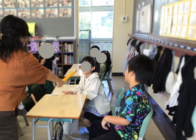 児童は、紹介してくれる全てに興味津々。質問タイムでは、アビー先生に聞きたいことがたくさんあり、待ちきれない様子で手を上げていました。