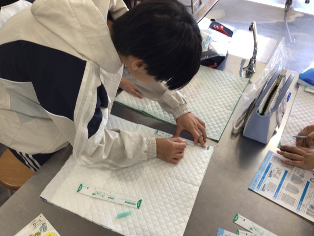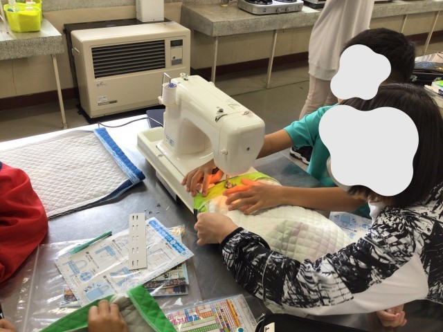 ミシンを使って作業を進める中で、印をつけ間違ってしまったり、縫ってはいけないところを縫い付けてしまうこともありましたが、少しずつ形ができていく様子にうれしそうな表情を見せていました。自分だけのバッグが完成するのが楽しみです。