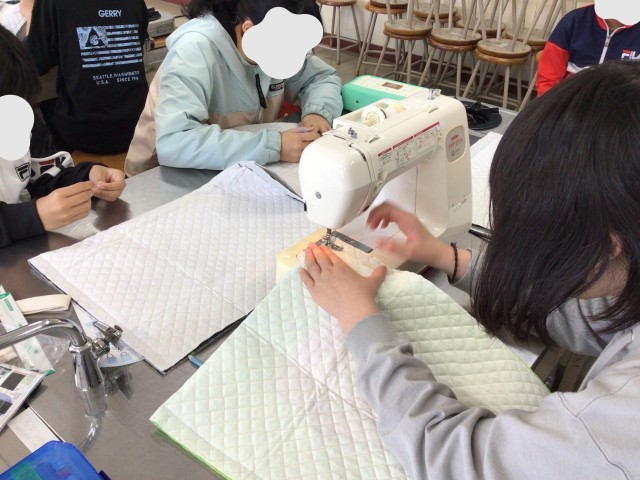 10月9日 6年生が家庭科「ソーイングで生活を豊かに」の学習で、トートバッグづくりに取り組んでいます。