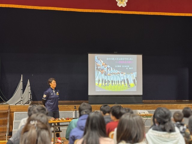 元日本女子野球代表の金由起子さんの講話では、「自分の路は自分で切り開く」というテーマに沿って、困難な状況でも努力を続けることの大切さや、自分を大切にする人は他の人も思いやることができるという話をしてくださいました。