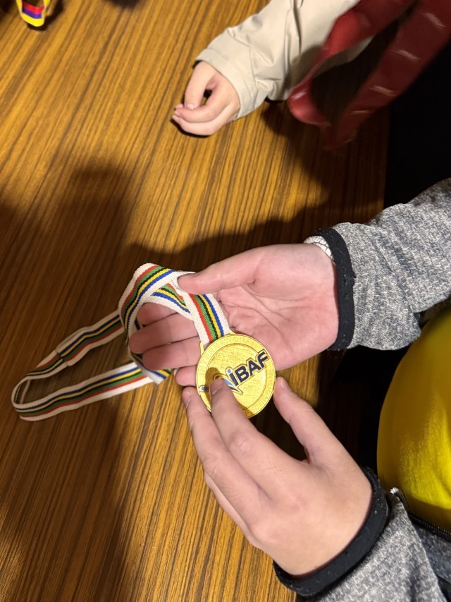 さらに、W杯で優勝したときのメダルも手に取らせてもらい、初めて見る世界一のメダルに子どもたちは大興奮でした。