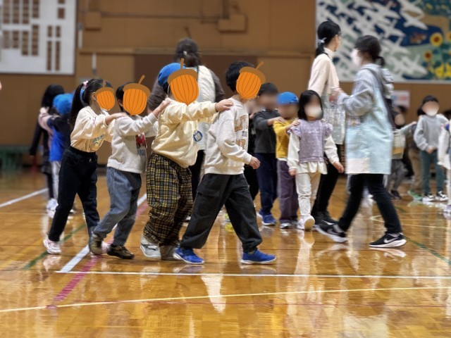 11月18日 市内の幼稚園・保育園に通う園児さんと1年生が体育館で遊びを通して交流をしました。