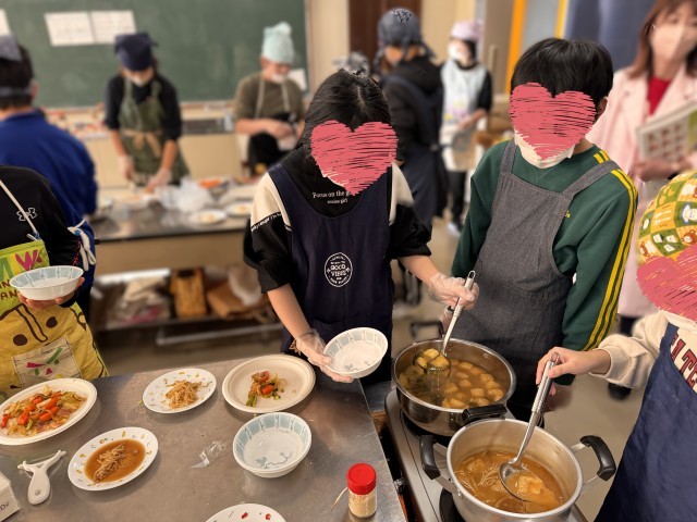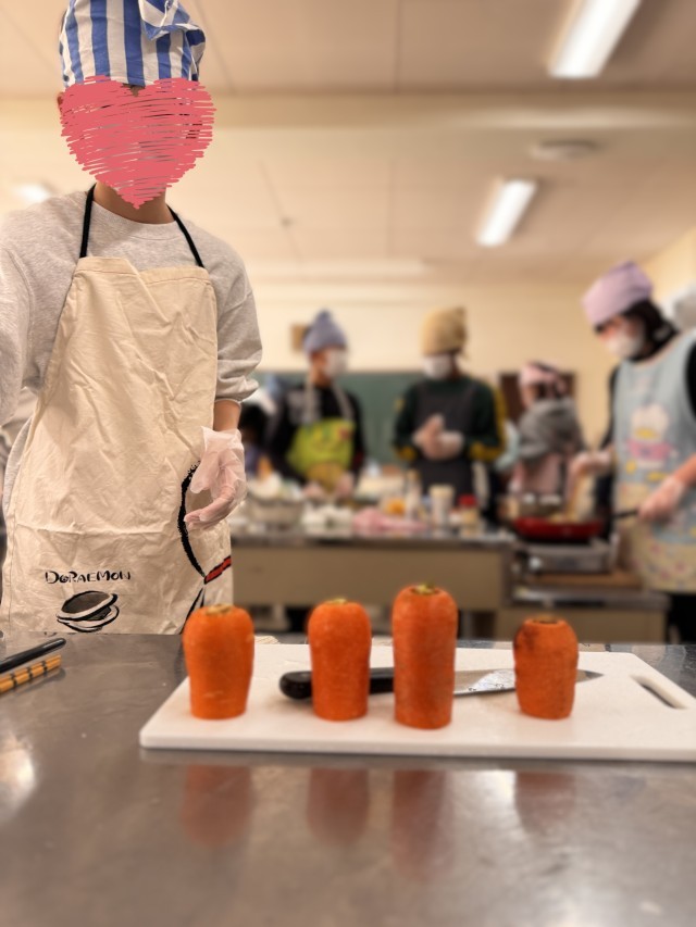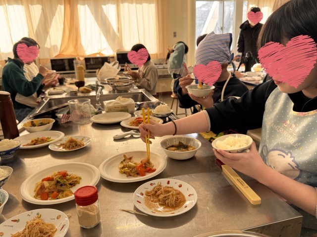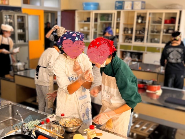 完成した料理はどれも魅力的で、家庭科室の周りにはおいしそうな香りが広がりました。ちょうどそばを通った1年生からは「いい匂いがする!」「おいしそうな匂い!」という声も聞こえ、思わず笑顔になりました。