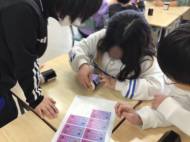 尚栄高校の皆様にご協力いただき、無事に完成したハスカップジャム。仕上げとして一つ一つのビンに児童が心を込めてラベル貼りを行いました。