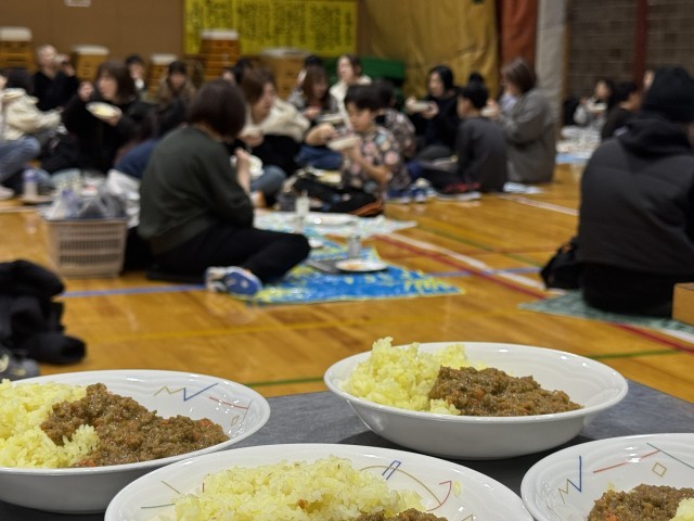 この日のメニューは、ドライカレーとフルーツゼリーという人気メニュー。「大盛りでお願いします!」「まだ残っているかな?」と食缶をのぞき込む姿や、うれしそうな声があちこちから聞こえてきました。保護者の皆さんと一緒に食べる給食は、いつも以上においしく、笑顔あふれるひとときとなりました。