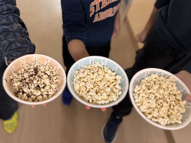 10月12日 にこにこ学級の6年生が、学級菜園で育てた「爆裂種」のトウモロコシを使って、ポップコーンを作りました。味は塩味とチョコ味で、まるでお店の味のようにおいしくできあがりました。児童も味に自信が...