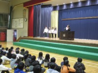 本日の1校時、修了式・離任式の様子です。修了式で校長先生から、地域のボランティアさんについてお話がありました。登下校時の見守りを行っていただいたり、1年生の授業のサポートに来てくださったり、たくさんの...