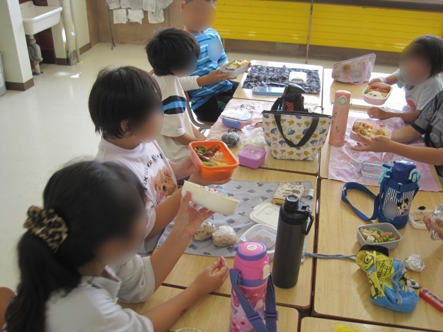 楽しいお弁当タイム【9/26】 公開日 2025/09/26 更新日 2025/09/26 お知らせ 今日は遠足予備日のため、お昼ご飯は給食ではなくお弁当でした。1枚目は1年1組の様子です。教室でお弁当を食べることはほとんどないので、ちょっと新鮮ですね。子どもたちは嬉しそうに食べていました。2・3枚目は2年2組の様子です。お互いにお弁当を見せ合って盛り上がっていました。とても楽しそうな様子でした。