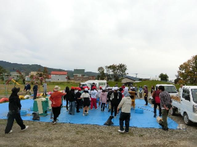 みんなで熱心に作業を行い、時間内にすべて脱穀作業を終わらせることができました。