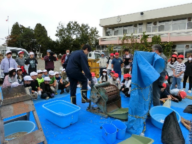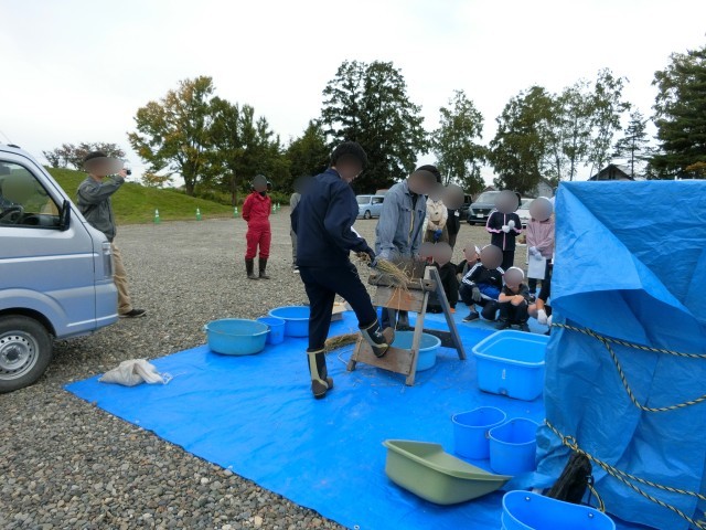 昨日(9/29)の3・4校時、5年生農業科・脱穀体験の様子です。