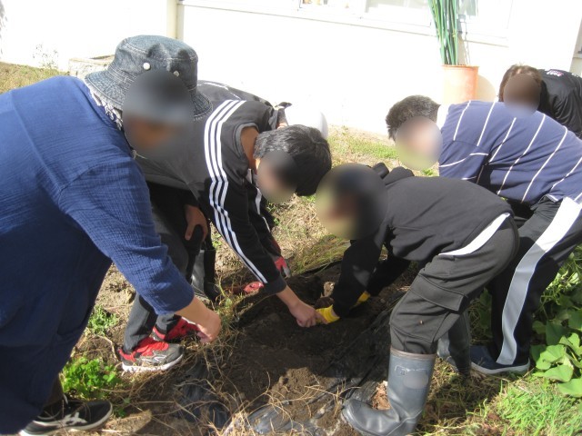 つつひま学級サツマイモ掘りの様子【10/10】 公開日 2025/10/10 更新日 2025/10/10 お知らせ 本日の給食後、つつひま学級でサツマイモ掘りを行いました。つつひま学級のみんなで大切に育てたサツマイモです。掘ってみてビックリ!土の中のお芋は、とっても大きく育っていました!今日収穫したサツマイモは少し熟成させた後、つつひま学級のみんなで調理する予定です。楽しみですね。 +4