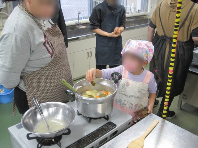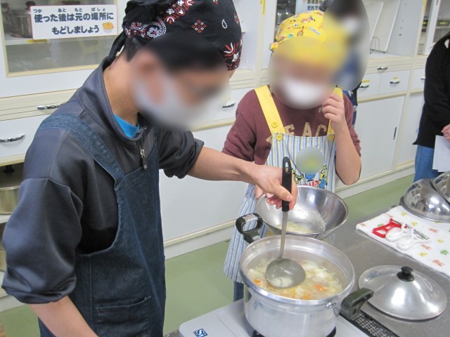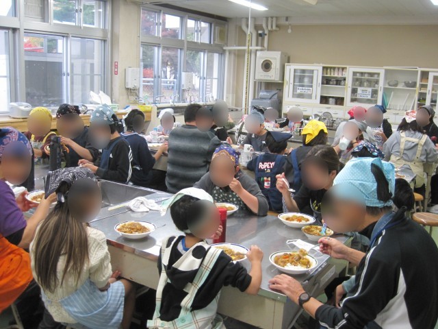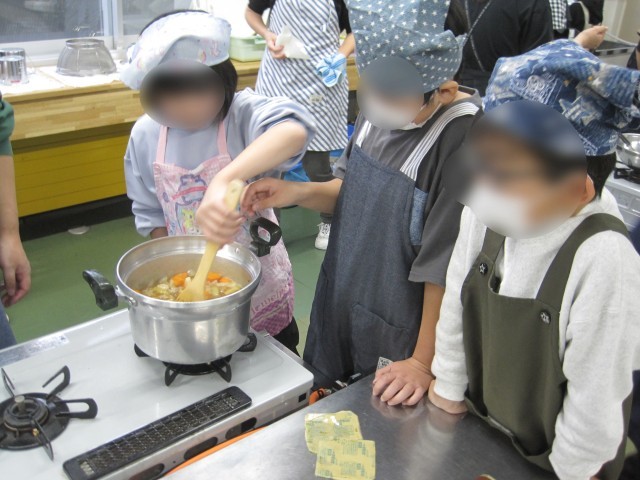 子どもたちはみんなで協力して調理を行うことができました。高学年の子が低学年の子に優しく接している様子も見られ、つつひま学級の子どもたちの仲の良さが伝わってきました。