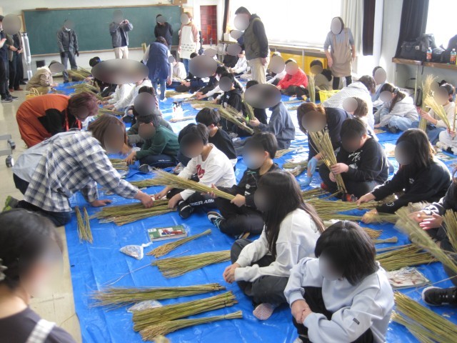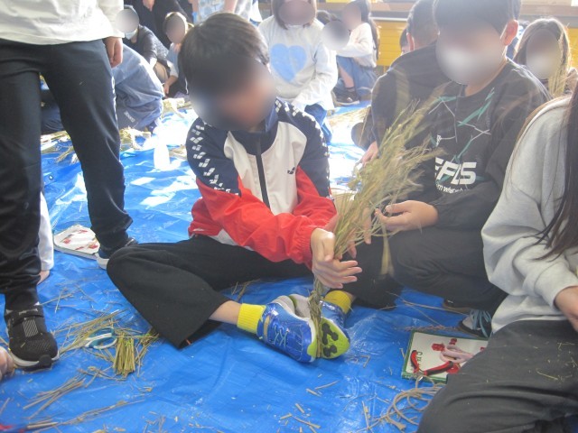 5年生、しめ縄飾り作成体験の様子【11/25】