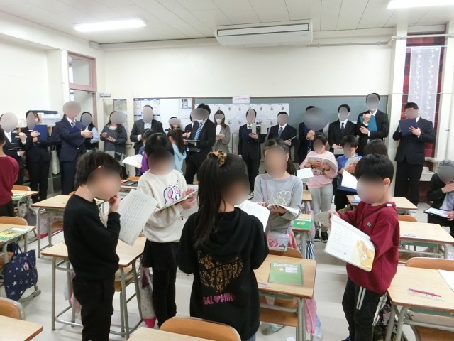 学生さんの他に、本校の教職員やお客様も授業を参観に来ましたが、子どもたちはいつも通り元気に授業に参加していました。校長先生が「2年2組のみんなは音読がとても上手でした。」と話していました。