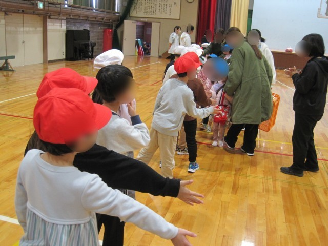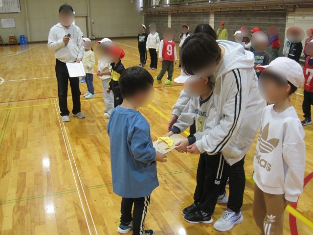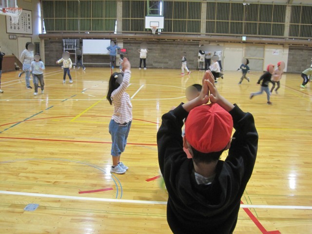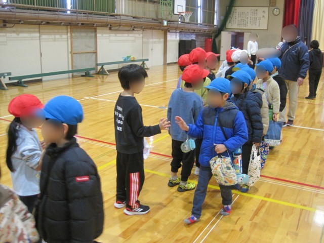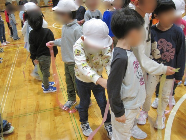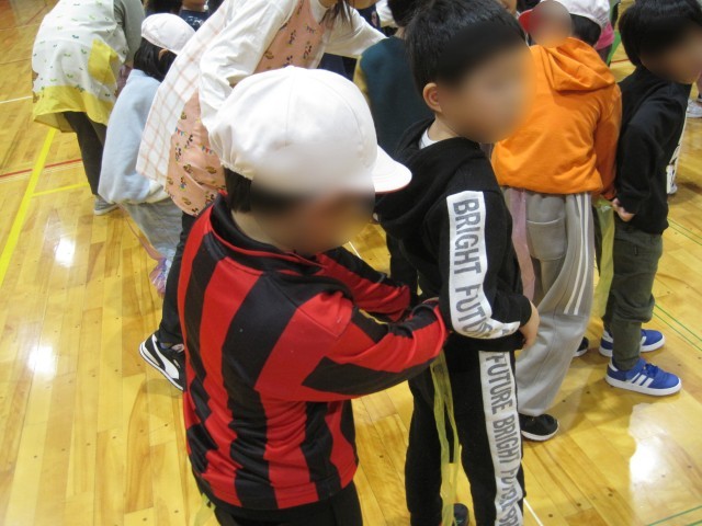 ラジオ体操でお手本を見せたり、しっぽとりゲームの前には年長児さんにしっぽをつけてあげたり、一年生がいつもよりも「お兄さん・お姉さん」に感じられました。