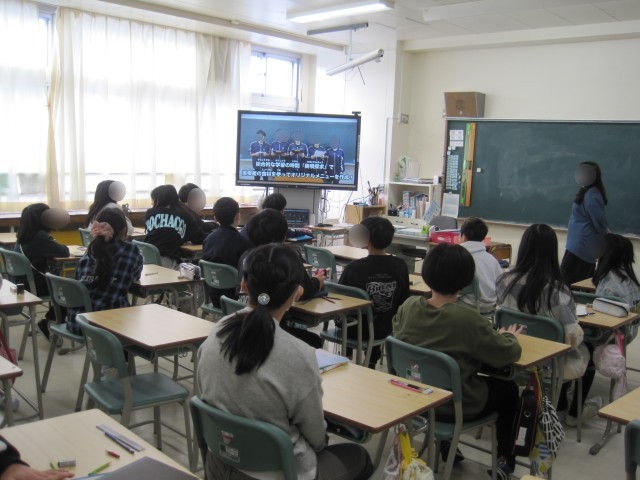 今日も献立を考案したグループによるメニュー紹介動画を、給食の前に各学級で視聴しました。