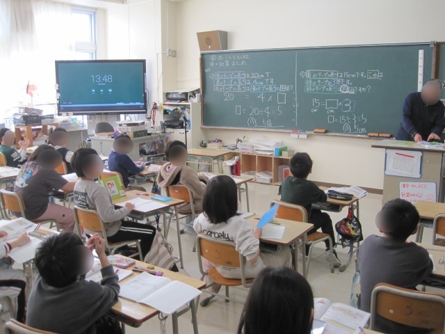 1~3枚目は3年1組、4~6枚目は3年2組「算数」の様子です。