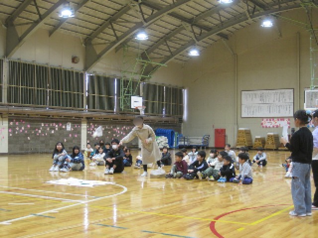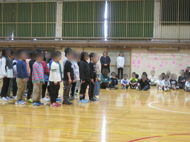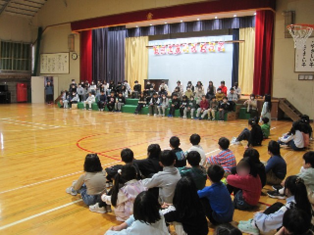 本日の2校時、6年生と1・2年生が体育館に集まり「6年生ありがとう会」を行いました。