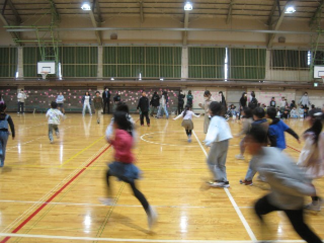 最後に6年生からのお礼として、6年生がオニになって「しっぽとりゲーム」を行いました。