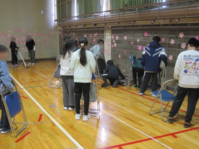 5年生、卒業式の会場準備の様子【3/6】
