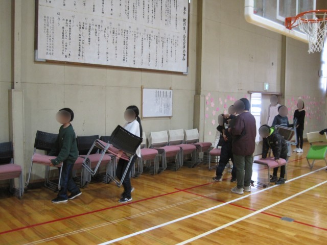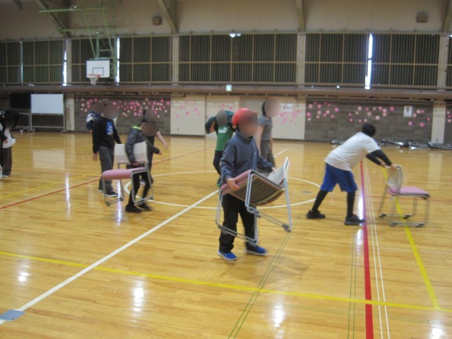 昨日(3/5)の5校時、5年生が卒業式の会場作りを行いました。
