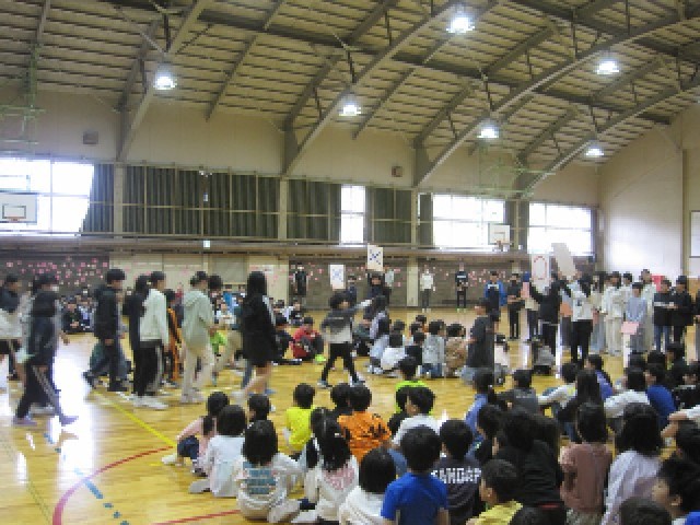 1年生を迎える会の様子【4/28】 公開日 2026/04/28 更新日 2026/04/28 お知らせ 本日の2校時、「1年生を迎える会」の様子です。各学年ごとに、学校に関するクイズやダンスの披露、先生に関するクイズを出題し会場は大盛り上がり!とても楽しい「1年生を迎える会」になりました。最後に1年生からお礼の言葉と自己紹介がありました。元気いっぱい発表する1年生の姿はとてもかわいらしく、上級生はみんな笑顔で嬉しそうな様子でした。 +6