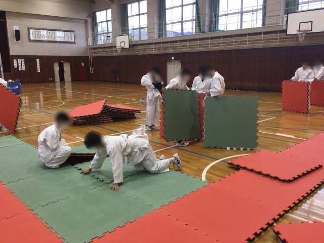 2Aは体育。柔道を行っています。柔道の授業は2コマ続きで行われ、畳代わりのウレタ...
