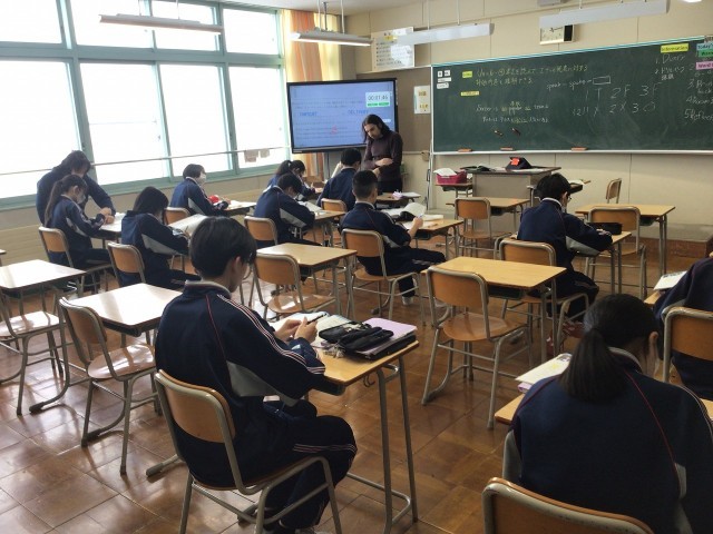 2Aは英語。2年生の英語は、少人数指導で実施しています。「U6-4本文を読んで、...