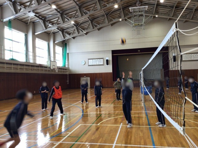 2Aは体育。バレーボールを行っていました。2年生も特別ルールで、サーブレシーブは...