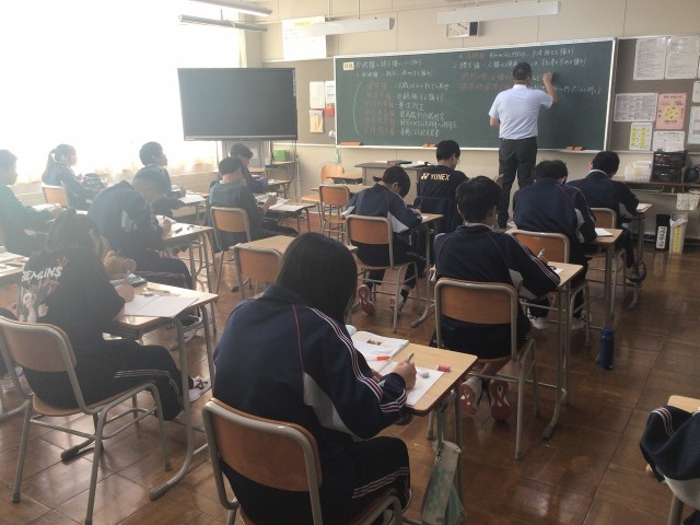 3Aは英語。「相手の立場に立って、具体的な提案をしながら、申し出たり応じたりすることができる」を課題に取り組んでいました。