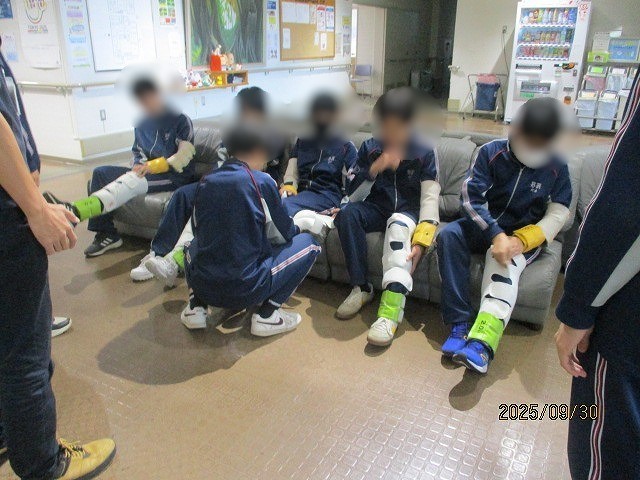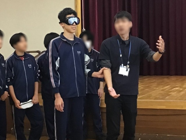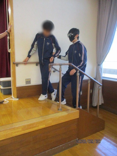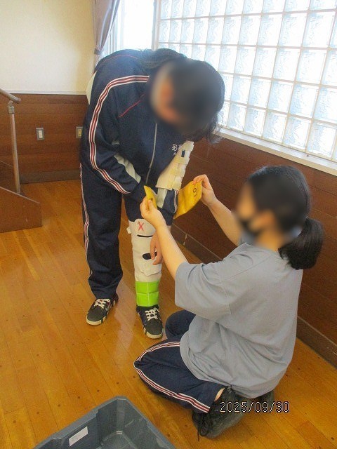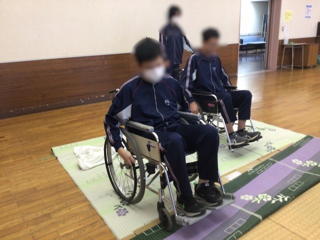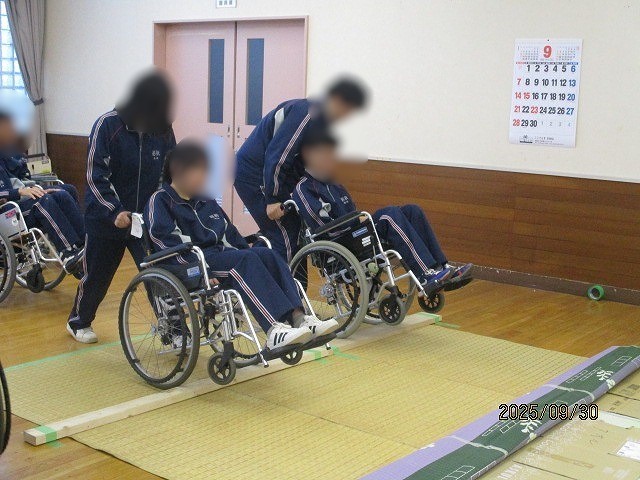 3年家庭科 福祉体験学習 公開日 2025/09/30 更新日 2025/09/30 お知らせ 本日3年生は、家庭科の授業で社会福祉協議会を訪れ、福祉体験学習を行いました。各学級2グループに分かれ、車椅子介助体験や高齢者疑似体験、アイマスクを使用して全盲の方の介助体験を実施しました。 後半は、実際に施設内の廊下や階段などを使用して、介助体験などを行うことで、福祉に対する理解を深めることができました。今回、講師を務めていただいた社会福祉協議会の皆さん、ありがとうございました。 +3