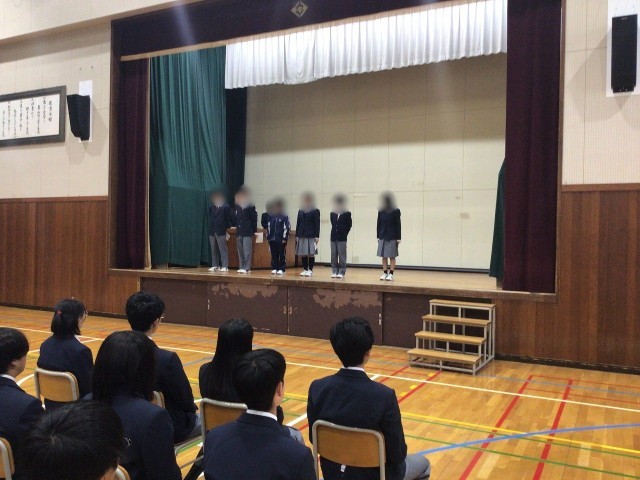 という内容でした。最後には全校生徒に向けて、生徒会が新体制となり、不慣れな部分もありますがよろしくお願いしますと締めくくりました。