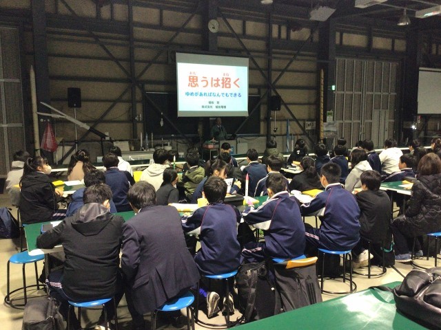 植松社長自ら、講演していただき、「思うは招く」「人は足りないからこそ助け合える」「違うは素敵」「これからは考える人が必要になる」「まずは本を読もう」など、沢山のメッセージをいただきました。