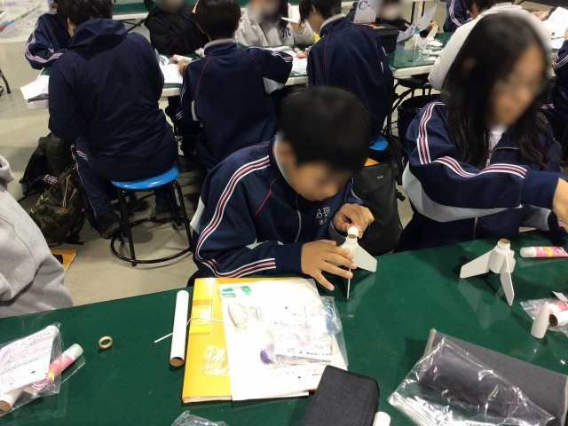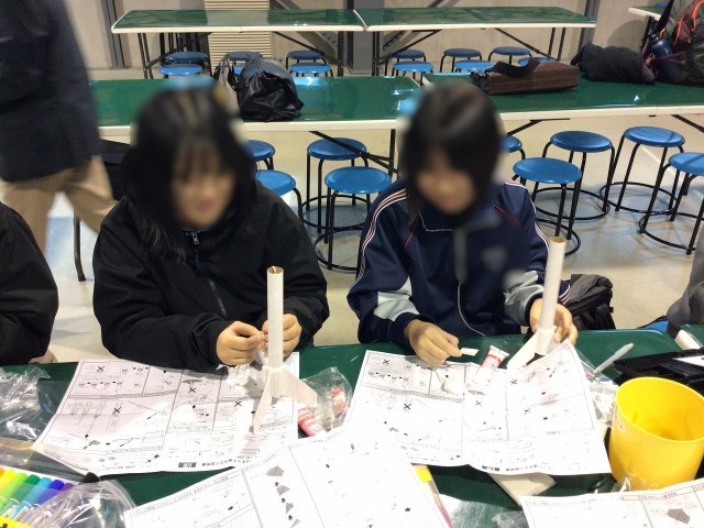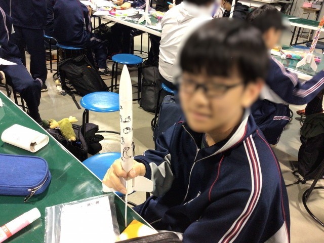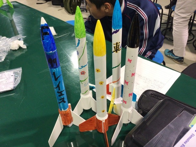 その後、ロケット作りを体験し、実際に飛ばすこともできました。