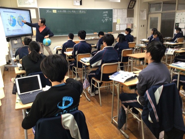 大型テレビの画面や、地球儀を使った説明を聞き、理解を深めていました。
