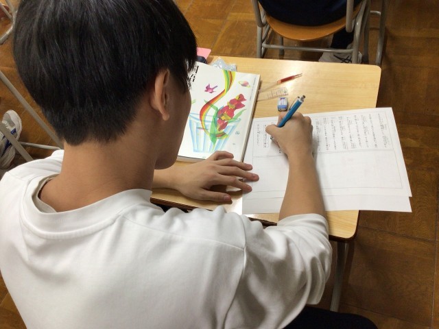 3Bは国語。「『おくのほそ道・松尾芭蕉』について知る。冒頭部分から芭蕉の思いを知る」を課題に取り組んでいました。
