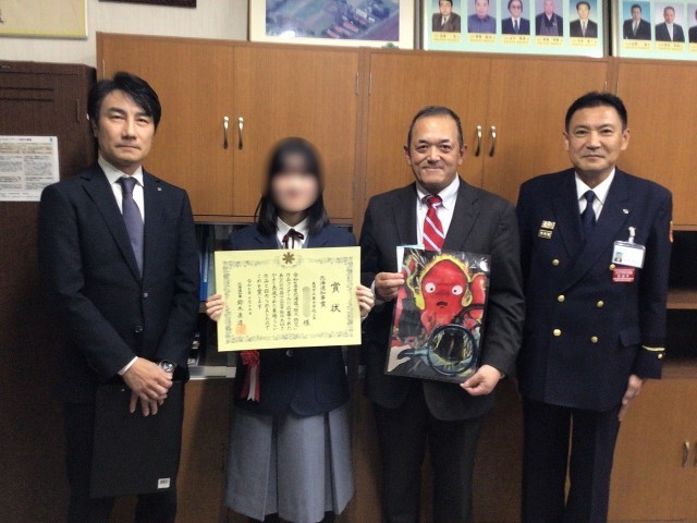 伊藤部長からのお祝いの言葉では、「タコ足配線の危険性を豊かな表現力で表されており、日常的な防火・防災への意識の高さが作品からうかがえること」「大切な命、大切な財産は一度失うと取り戻すことはできないので、今後も意識を高めてほしい」「今後もいろいろな場面で、火災の予防、火災の危険性について呼びかけてほしい」等のお話がありました。