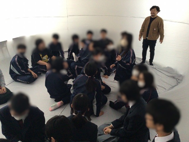 サウンズオブライフジャパンで音空間コンサルタントをしている空山さんと、わっ株式会社でパブリックアートコンサルティングをしている渡辺さんが来校し、「音」と「空間」のおもしろさに触れる体験会を行いました。