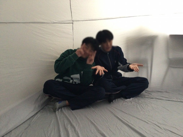 昼休み、音楽室にエアドームを設置し、いろいろな音楽を体験しました。