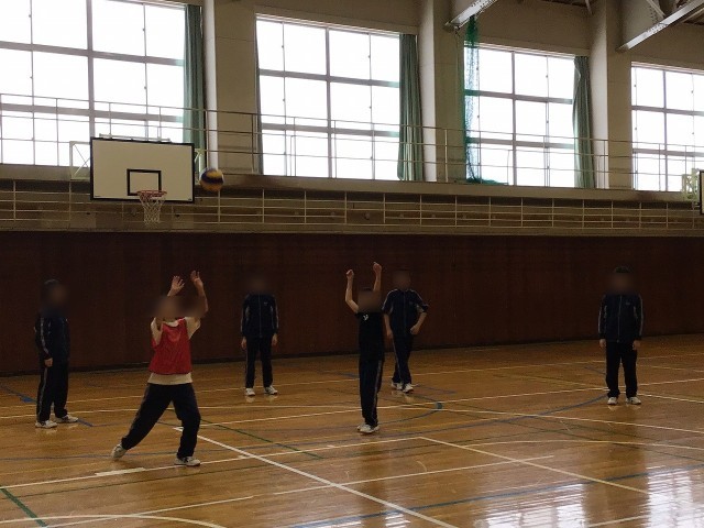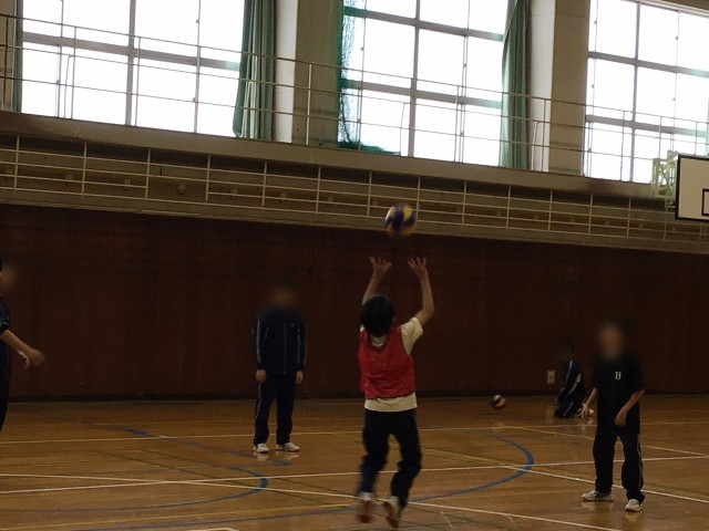 1年生は保体でバレーボールの学習をしています。サーブを落下点でキャッチし、セッターに手でボールを上げ、トスをするところまでやっており、ボールへの反応が徐々に良くなっています。