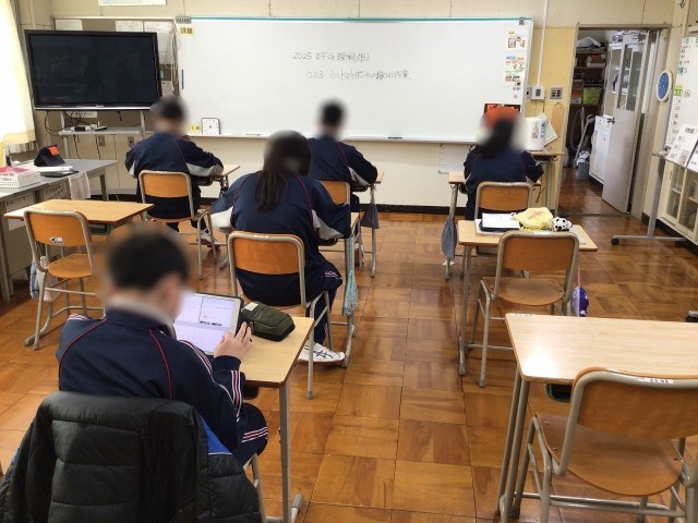 教室に戻った後は、iPadで栽培の記録に入力していました。