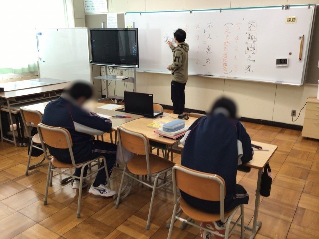 国語は、漢文で「レ点、一二点」について学習し、書き下し文にする練習を行っていました。