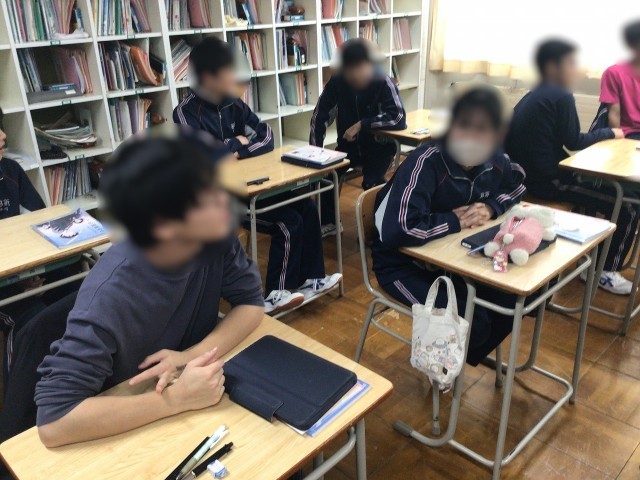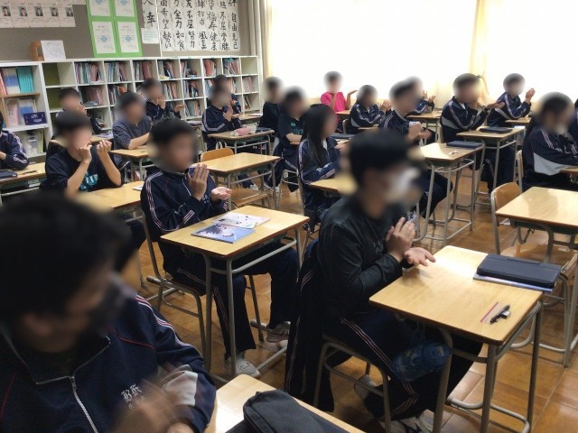 授業では、「受験前日に自分に言ってほしい言葉は?」など具体的な場面を想定し、自分ならどうするかを考え、ペアで交流するなどしました。