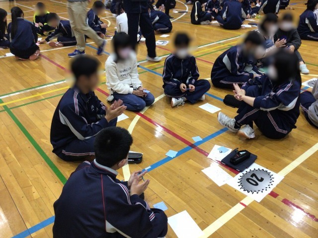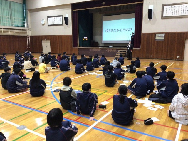 本日の5校時、東小の6年生が来校し、東中全校生徒と一緒に、生徒会主催のいじめ「ゼロ」集会を開催しました。