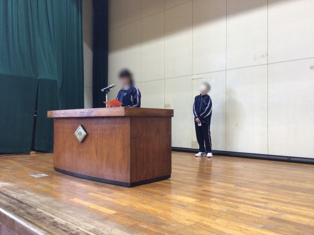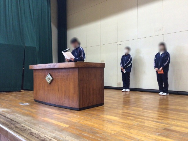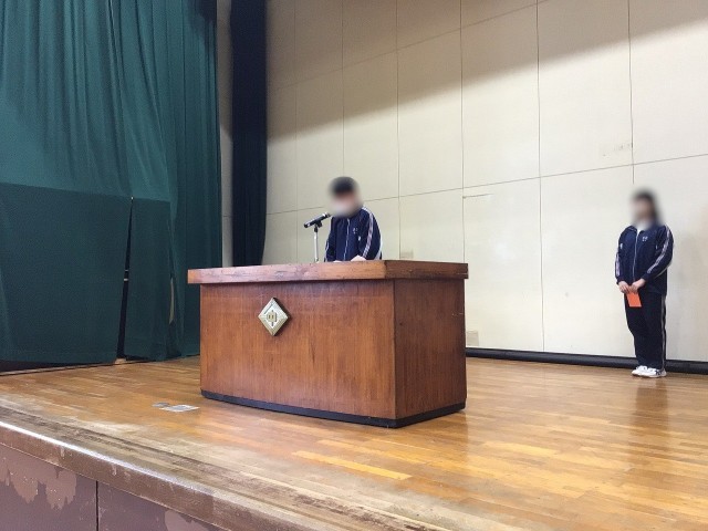 休み前集会では、各学年の代表生徒がこれまでを振り返りと、今後の抱負を述べました。