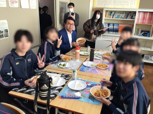 本日の給食は、3年生が総合的な学習の時間「美唄探求」で考案し、実際に調理実習も行った中から、給食センターによって選ばれたものです。