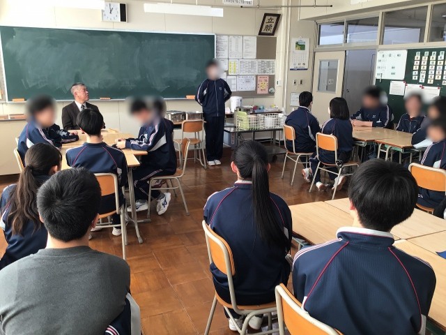 給食の前には、国と道の基準をクリアしたジビエ肉処理施設を、美唄市内で運営し、今回の鹿肉も調達した山本峻也さんが講師として、「いのちをいただく」について講演していただきました。