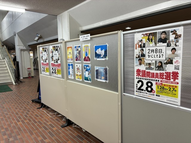本校美術部生徒の作品が市役所に 公開日 2026/01/28 更新日 2026/01/27 お知らせ 2月8日に行われることになった、衆議院総選挙に向けて、市役所1階に投票を呼びかけるポスターと一緒に、令和7年度明るい選挙推進ポスター応募に出品した本校美術部員の作品が掲示されています。お立ち寄りの際は、是非ご覧ください。
