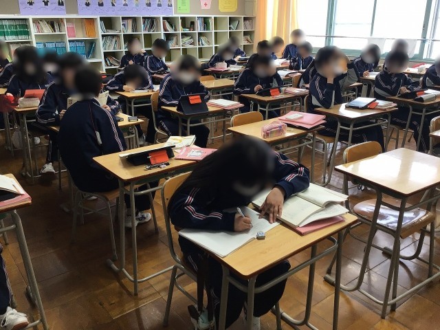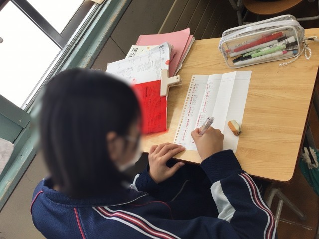 2Aは国語。テストに向けて、各自テスト勉強を行っていました。