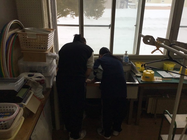 ホワイトボード、床、水道のシンクなど、隅々までキレイに掃除していました。